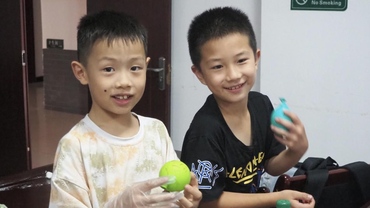 图为小朋友成功做出“生气的河豚”实验 吴思逸摄
