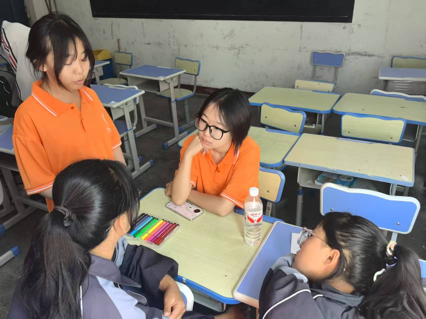 图为志愿者和东乡中学小同学在讨论未来(杜骞 摄)