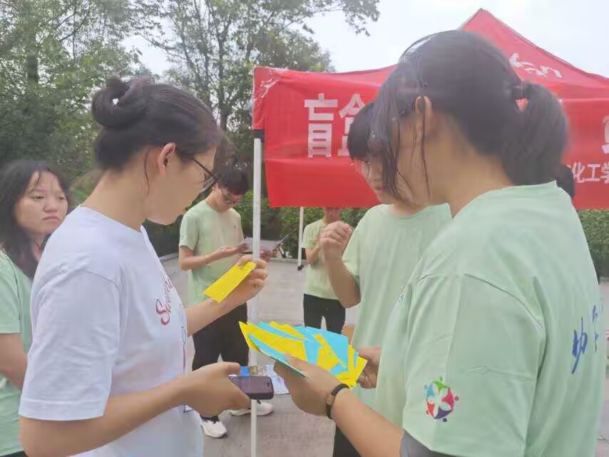 趣味主题活动:创新形式让政策“声”入人心 在图书馆对面的广场上,实践团精心策划的“盲盒探宝寻智趣,资助传情筑梦真”主题活动热闹开展。活动将资助政策宣传与趣味互动深度融合,吸引众多同学驻足参与。