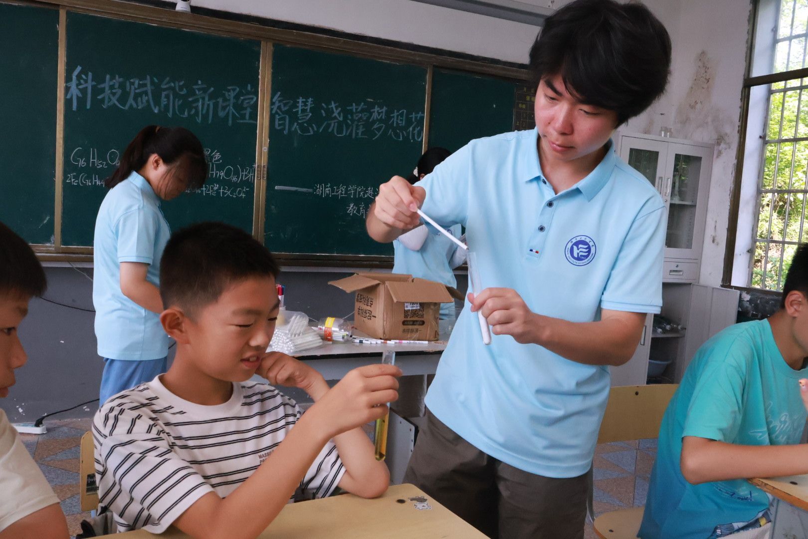 7月10日,湖南工程学院赴湘乡市山枣镇“资助+心理”教育关爱暑期实践团于山枣中学开展了“科技点亮未来,助学筑梦同行”的科学实验活动,大学生志愿者携手当地乡村儿童探索科学奥秘。
