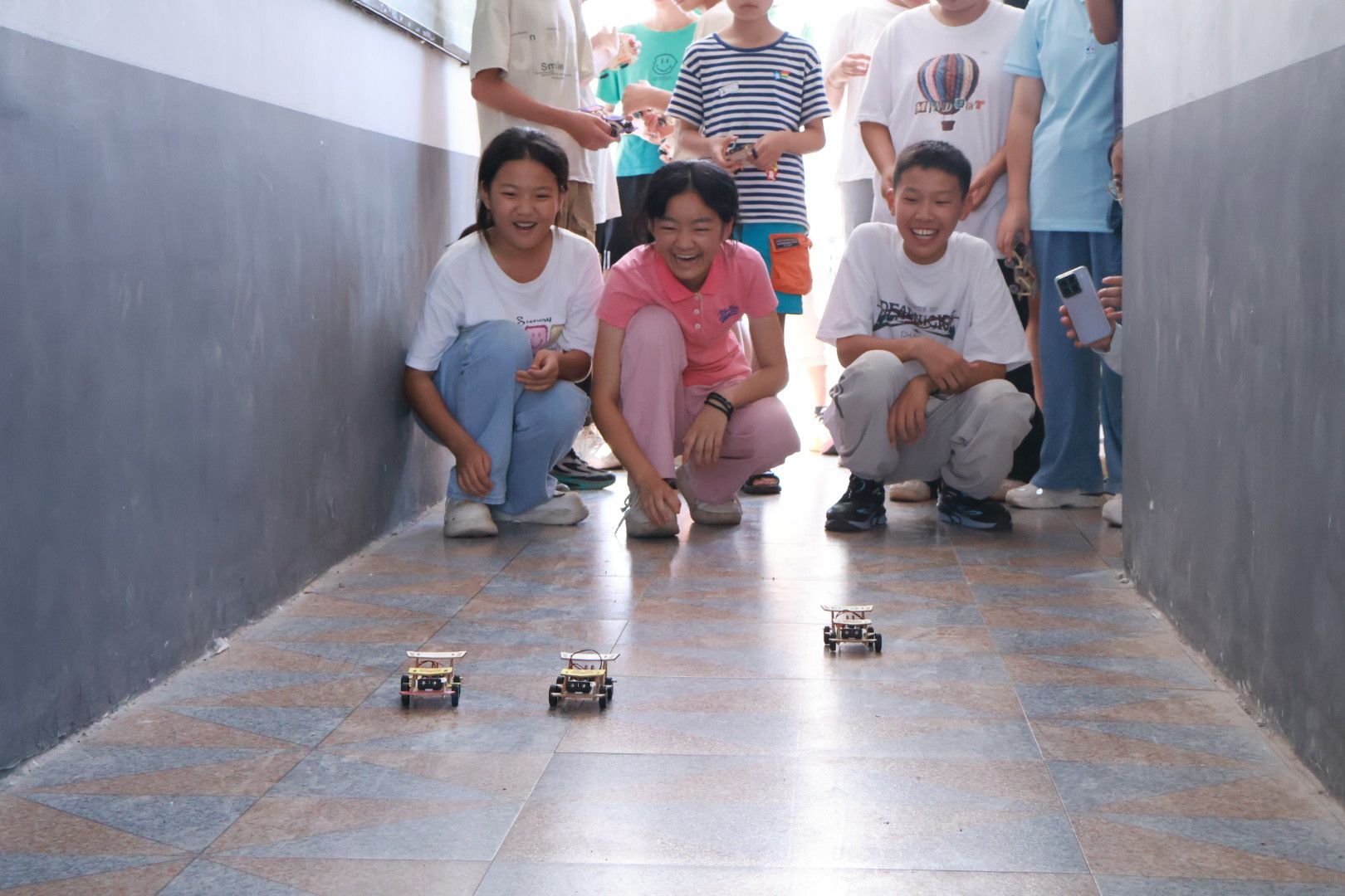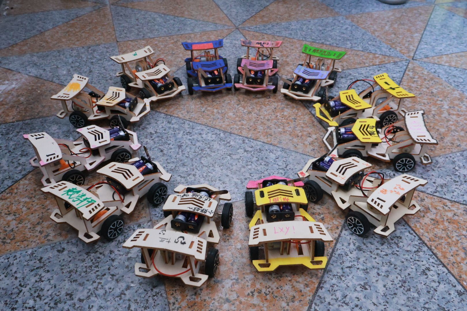 活动中,同学们认真学习科学知识,并用塑料瓶、PVC管组装“水火箭”,齐力发射,发射时欢呼声此起彼伏;随后动手组装DIY电动赛车,赛道上的比拼让同学们感受到速度与激情;“茶水变墨水”实验中,草酸与三氯化铁的反应让同学们惊叹不已;“手摇发电”体验里,合力摇动把手使灯泡亮起的瞬间,满是惊喜的感叹。一个个奇妙的科学实验,让同学们感受到科学的魅力。