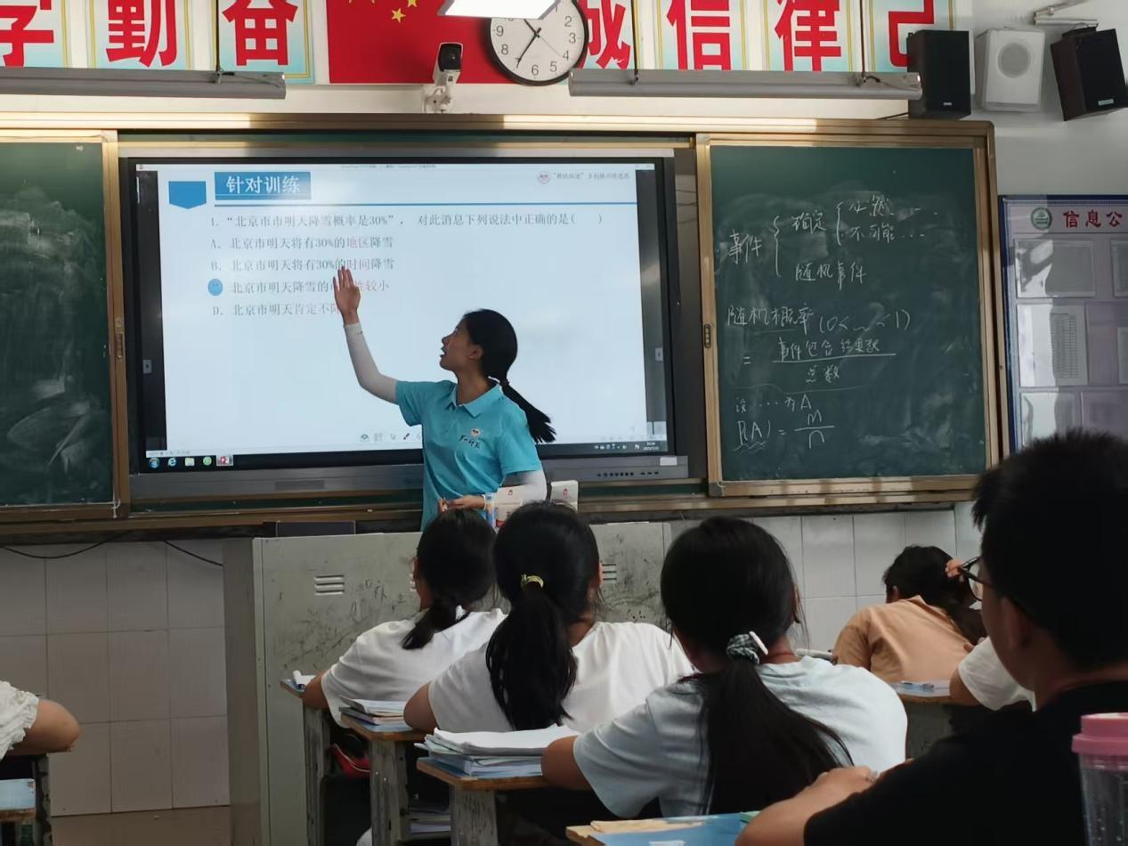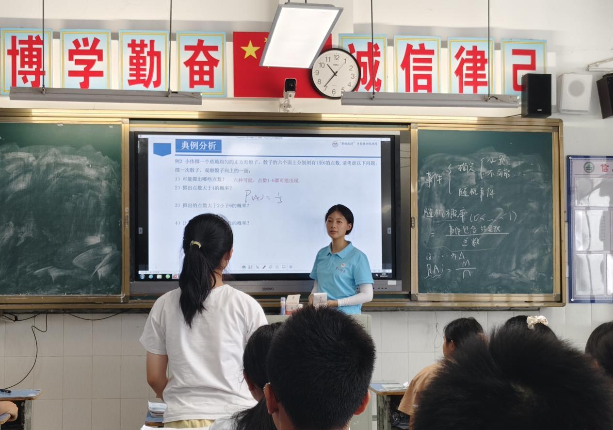 2025年7月15日,湖南第一师范学院“数映红途”乡村振兴促进团教学组成员向素妍老师,以生活中常见的随机现象为切入点,为乡村学生带来了一堂生动的“概率初步”课,通过互动游戏与实例分析,让学生在趣味探究中理解概率的意义与计算方法。