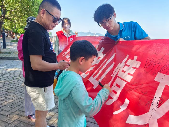 在中庙姥山岛的实践之旅中,文明旅游宣传横幅签字活动成为了一道亮丽的风景线。实践团成员们手持印有“青山绿水姥山情,文明旅游共践行”标语的横幅,热情地邀请过往游客和当地居民参与签字。通过签字活动,向游客普及文明出游知识,倡导爱护环境、尊重文化。游客纷纷落笔承诺,用行动践行“文明旅游,从我做起”。实践团成员们用实际行动,为推动文明旅游贡献了自己的力量,也为中庙姥山岛的旅游发展注入了新的活力。