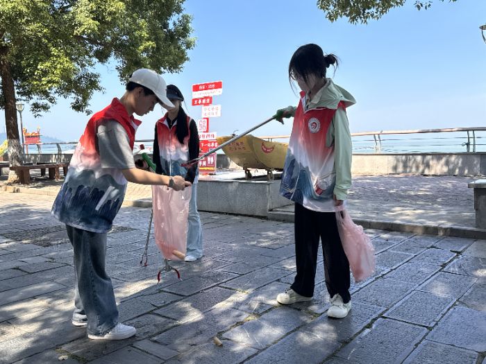 在追溯淮军文化的同时,实践团成员们也将目光投向了姥山岛的生态环境。为了还滩涂一片洁净,实践团成员们开展了净滩环境“焕新颜”。他们手持垃圾夹,沿着滩涂仔细搜寻,将散落在各处的垃圾一一捡起。尽管烈日炎炎,但成员们没有丝毫退缩,用实际行动践行着环保理念。经过不懈努力,滩涂的面貌焕然一新,重新焕发出勃勃生机。这场净滩行动,不仅是对环境的清扫,更是用青春力量践行环保承诺的生动注脚。