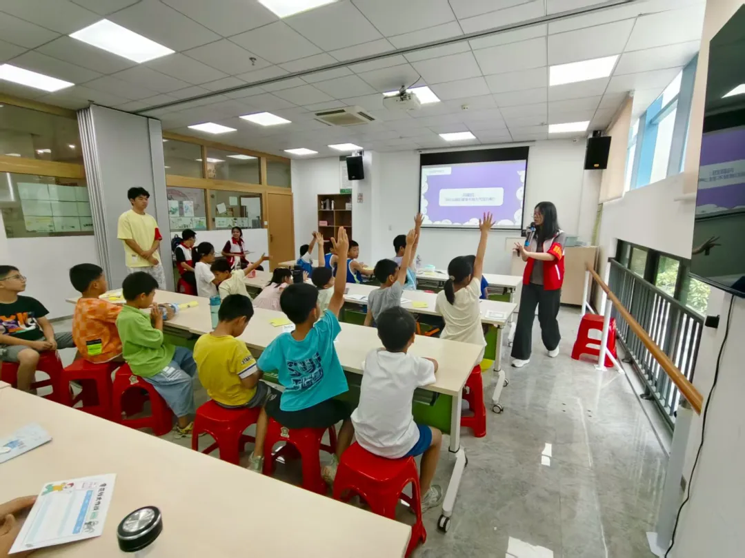 2025年7月15日,华南师范大学物理学院四进永和服务队队员李梓晴在广州黄埔区永和社工服务站为小朋友们开展了一节大气压力科学课堂。该课堂在满足小朋友们的好奇心的同时培养了他们的科学思维和方法,在他们心中种下了热爱科学的种子。