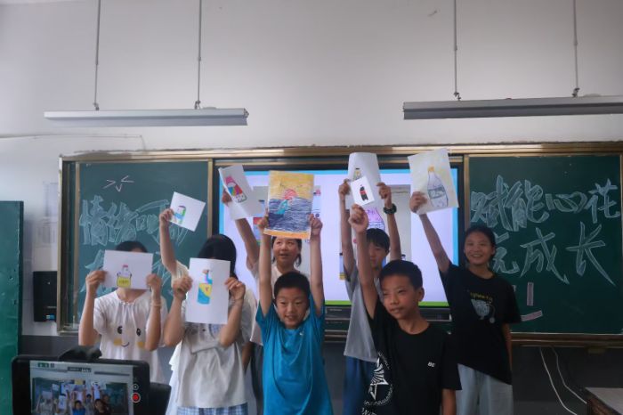 “情绪漂流瓶” 环节受到了孩子们的热烈欢迎。在志愿者的引导下,孩子们发挥着自己的想象力,绘制出代表自己近期情绪的 “瓶子”:有的画了 “红色波浪瓶”,说这代表着自己最近因为考试得了满分而感到的兴奋;有的画了 “灰色云朵瓶”,说里面装着自己因犯错而受到责罚的烦恼;还有的画了 “蓝色天空瓶”,表示最近心情很平静。合影时,孩子们举着自制漂流瓶笑容灿烂,有学生说 “学会了生气时要冷静,多帮朋友”。