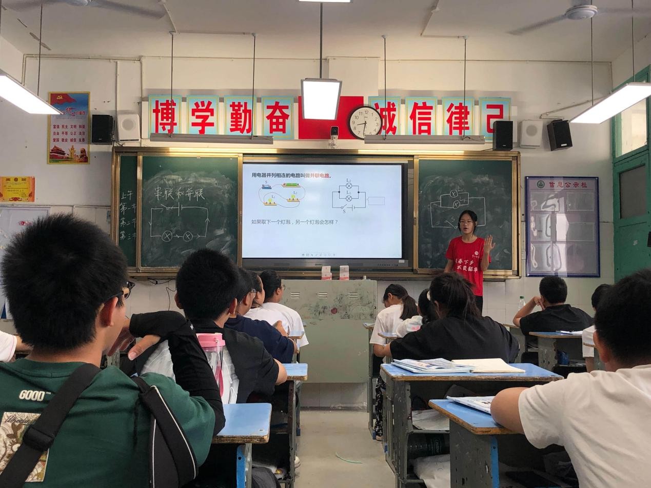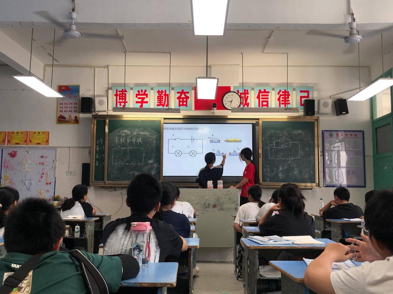 (通讯员:潘超红 刘林杰 刘子谦)2025年7月16日上午,湖南第一师范学院“数映红途”乡村振兴团走进古丈县民族中学,由夏坤荣老师为初中生们带来了一场精彩的“串联与并联”物理课程。此次课程通过理论讲解与实践演示相结合的方式,帮助同学们深入理解串联和并联电路的特点及应用。