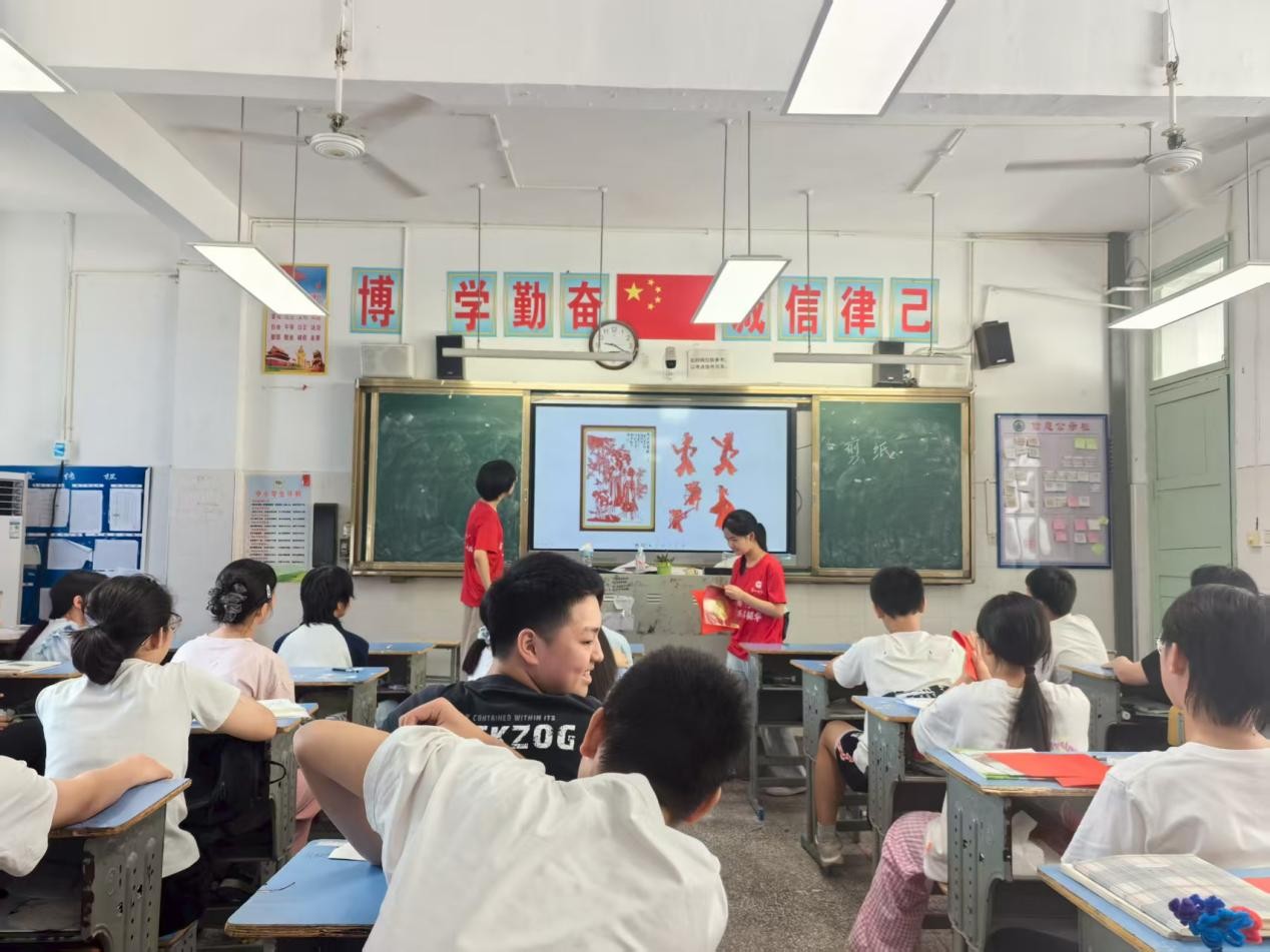 (通讯员:潘超红 刘林杰 覃张敏)2025年7月16日,湖南第一师范学院“数映红途”促进团教学组成员张煦涵,为学生们带来了一堂别开生面的传统剪纸艺术课程。课堂上,张煦涵通过生动示范与积极互动,带领学生们走进剪纸的奇妙世界,学习剪纸的基本技法与图案设计,让学生们在动手实践中感受非遗艺术的独特魅力。