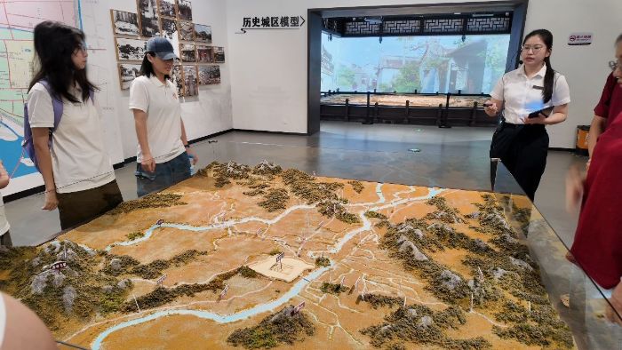 移步至“魅力漳州”板块,“水仙花城・魅力漳州”全方位展示着漳州的人文与自然之美,让实践队员们深切感受这座城市的开放包容与闲适豁达;“历史名城・古韵漳州”则以影像结合实体模型的方式,清晰演绎着古城千年史诗,一步跨千载,一图记一世,在时光的长河中诉说着漳州的古老韵味。
