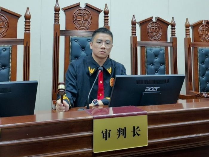 之后,队员们来到了第一审判法庭。这里的一切对于他们而言都充满了新鲜感。大家纷纷走上审判席,近距离观察法官、陪审员的座椅,触摸桌上的法槌,感受司法工作的神圣与庄重。有的队员还坐在审判长的位置,想象着记录庭审过程的情景;有的则站在当事人的位置,思索着庭审中的种种环节。