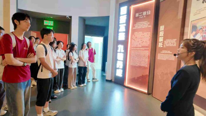 这是中国体育史上第一座且唯一以女排精神命名的信仰坐标——没有鎏金穹顶,不设恢宏展柜,却在斑驳实物中,垒砌起一座民族精神的丰碑。它如同一枚时间的琥珀,将那些汗水浸透的岁月、那些永不言败的呐喊、那些让亿万国人热泪盈眶的瞬间,凝刻在这片孕育冠军的土地上。实践队员们走进中国女排精神展示馆,从一件件女排发展全链条展品中回望中国女排的来时路,深刻体悟中国女排“祖国至上、团结协作、顽强拼搏、永不言败”的伟大精神。