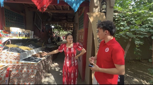 浸润民俗文化:感受传承力量与青春担当除产业调研外,学习维吾尔族传统葡萄文化民俗知识是实践团的另一重要任务。在景区民俗区域,成员们通过走进王洛宾音乐艺术馆,聆听《在那遥远的地方》等经典民歌,感受音乐与葡萄文化的交融;走访达瓦孜民俗风情园,体验高空走绳等传统技艺表演;探访青蛙巷特色街区,深入了解维吾尔族与葡萄相关的节庆、手工艺及饮食文化。“从葡萄架下的民俗故事,到代代相传的种植技艺,再到今日鲜活的民俗体验,文化的生命力就藏在这些细节里。”实践团成员乌力凡感慨道。此次实践让团队深刻认识到,文化传承不仅是技艺的延续,更是民族精神的纽带。