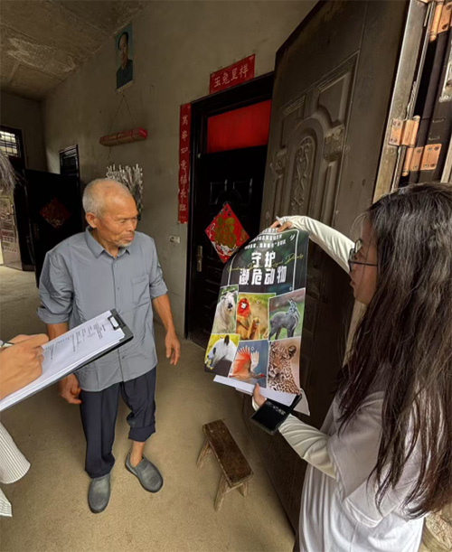 二、深入基层宣传,共筑生态理念 7月22日至25日,调研队以“深入基层探索,共助生态宣传”为主题,在周一村及周边西楼村、团标村等十几个村落开展生态保护与珍稀动物科普宣传活动。在周一村,队员们通过悬挂横幅、张贴海报、发放手册、现场讲解等形式,向村民普及秦岭四宝知识、水资源保护重要性及绿色种植理念。同时,团队分组深入周边村落,围绕“金丝猴保护与生态自然结合”等主题进行入户走访宣讲,克服困难耐心沟通,收集关于村庄生态环境现状、生态产业发展及村民环保意识的调查问卷数百份。活动有效提升了村民生态意识,问卷结果为当地后续生态发展策略制定提供了依据。