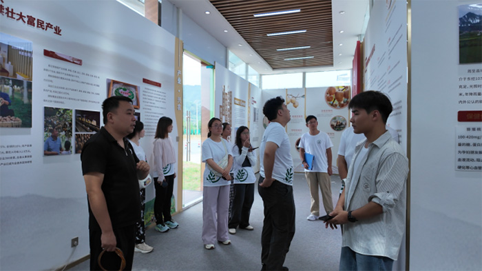 一、调研周一村产业,探寻振兴路径 7月21日,调研队首先抵达周至县楼观镇周一村。在西安曲江新区管委会驻周一村第一书记史立业的带领下,团队与村委开展座谈。史立业介绍了周一村以猕猴桃产业和生态民宿为核心的特色发展模式,以及污水处理、村民环保教育等生态保护措施。队员们就生态治理、文化传承与产业协同发展问题与史书记深入交流。随后,团队参观了猕猴桃种植展览馆,系统了解猕猴桃引种、培育、标准化种植历程及技术要点,并实地走访了猕猴桃种植示范园和千吨气调贮藏冷库,考察了分拣、清洗、加工、包装等现代化生产线,深入理解当地通过深加工提升附加值、线上线下拓宽销售渠道推动产业升级的实践。