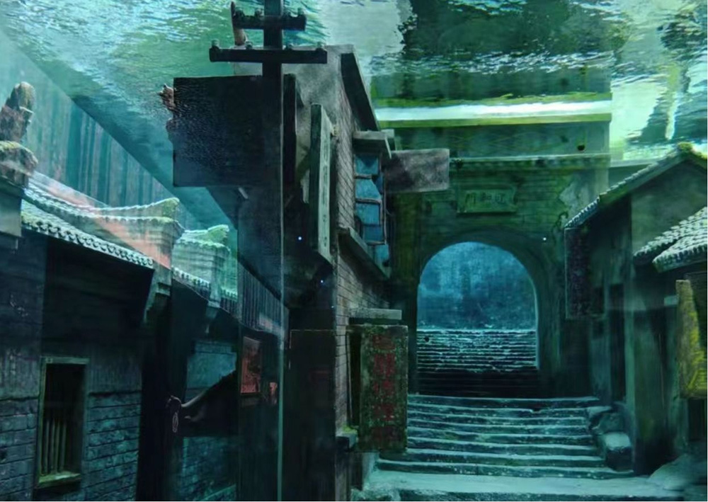 走到“水下展厅”,玻璃幕墙后,秭归老县城归州镇的一角静静“沉”在水中。全息投影下,老街上的灯笼轻轻摇晃,牌坊上的字迹依稀可辨,仿佛下一秒就会有熟悉的身影从巷口走出。一位头发花白的老人指着水中的建筑,声音有些哽咽:“那是我家隔壁的杂货铺,小时候总在那儿买糖吃。”