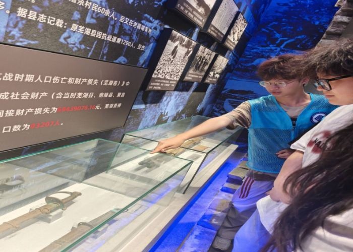 图为团队成员方天赐在为游客讲解相关内容  唐静雯 供图