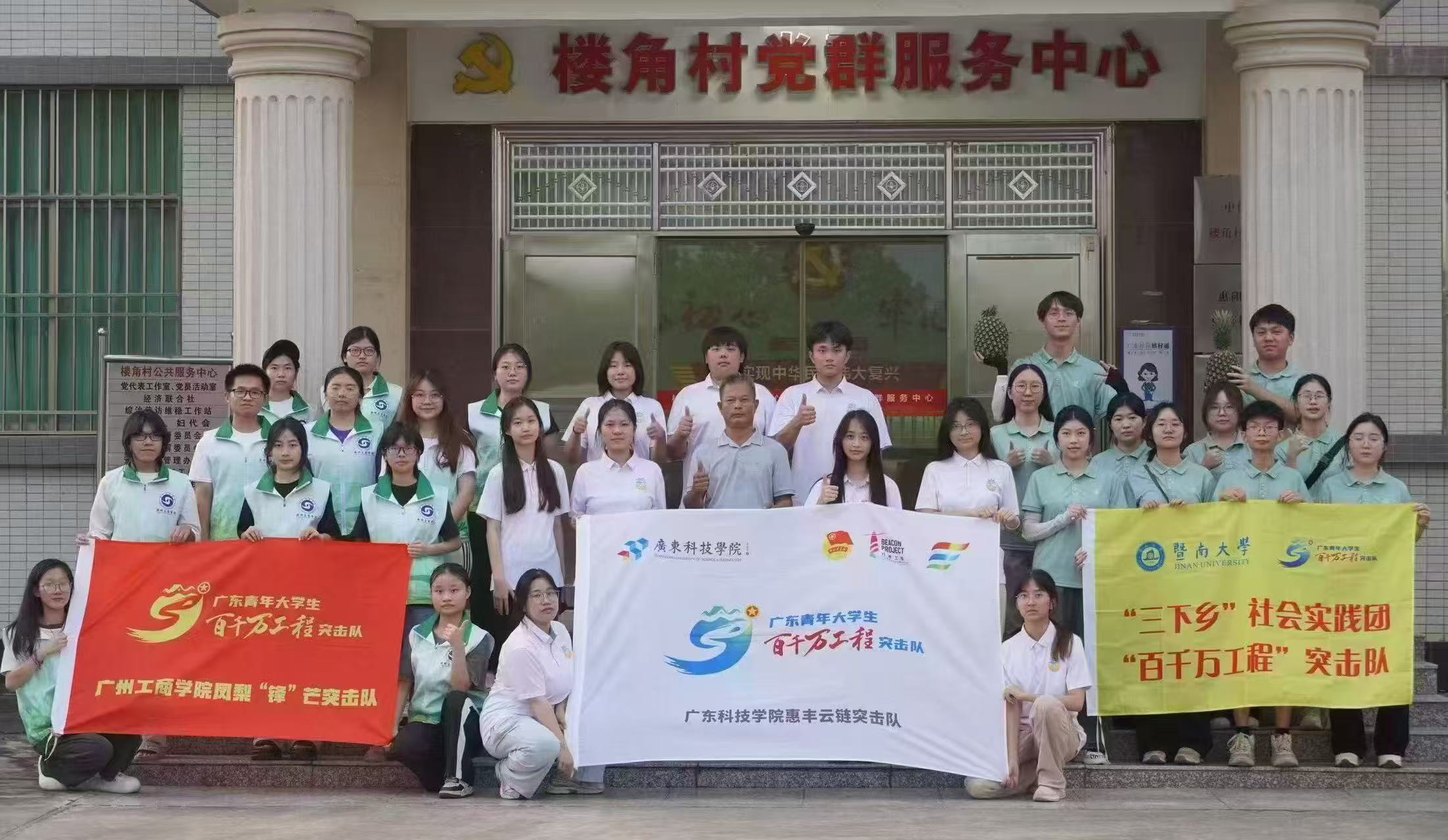惠州市惠阳区融媒体中心记者深入楼角村,专访被村民亲切称为“凤梨哥”的王瑞练书记,走近惠丰云链突击队,细听“三下乡”助农行动。广州工商学院、广东科技学院、暨南大学等高校队伍齐聚楼角,多校学子以“百千万工程”突击队之名集结,借多元高校力量,从直播创意赋能到基层实践交流,跨越校际边界,让青春智慧融入乡土产业,让青年力量扎根乡村沃土,以实际行动践行“把青春华章写在祖国大地上”的使命担当。