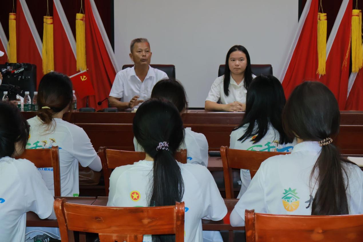 图为两位书记为队员讲解乡村发展经验(广东科技学院邓瑞庄摄)