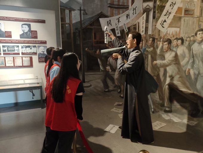 图为实践团成员参观临泉县千里跃进大别山纪念馆。