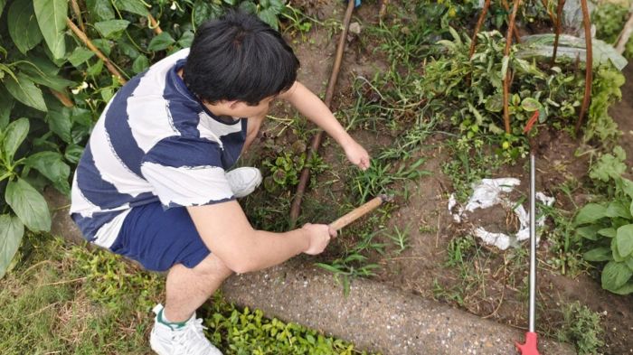 在另一片田畴,队员张润豪正躬身青苗间,一株株手工拔除杂草,汗水顺着脖颈滴进泥土。“能打药不?多快啊!”有村民不解。张润豪直起腰,抹了把汗:“叔,药是快,可地伤了元气,菜味儿也不对。您试试,手拔的地,苗更壮实!”他顶着烈日,连续数日跟着村民下地,从除草到整地全程参与。