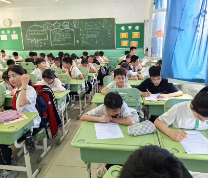 教室里,阳光透过窗户洒在课桌上,同学们身着统一校服,胸前鲜艳的红领巾格外醒目。他们正专注填写着团队成员发放的野生流浪动物保护调查问卷,笔尖在纸上轻轻滑动,有的微微蹙眉思考选项,有的快速勾选答案,安静的氛围里,满是对动物保护议题的认真探索,将