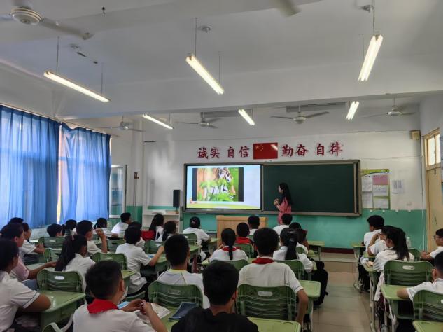 课堂上,我们的队友借趣味视频和趣味小游戏,让小朋友们对动物的生存现状有基础的了解,接着用小朋友们易懂的童趣语言,温柔讲述了野生动物的生存现状与流浪动物的真实困境,让孩子们在聆听中慢慢懂得“小动物也需要被保护”;
