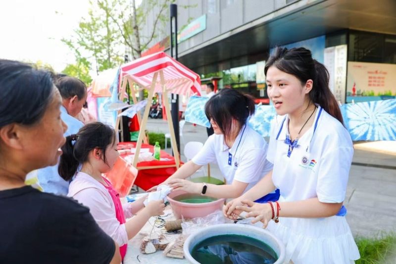 项目联动:本草经济激活内生动力在“染韵本草坊”体验区,空气里弥漫着艾草特有的清冽香气和薄荷的清凉气息。来自安徽中医药大学“针艾苑”实践基地的新鲜药材,此刻正从药屉走向布帛,开启一场从药用价值到艺术表达的奇妙转化。艾草拓染,靠的是植物本身的汁液和色素,保留的是最原始的自然形态;而扎染,则通过物理防染的方式,让布料与染液碰撞出不可预知的纹样。当原本普通的棉布经由草药与巧手,蜕变成承载着草木灵韵的艺术品,本草之美便以最直观、最可感的方式,浸润了每一位参与者的心田。且这种”传统文化引流+实践项目落地”模式,正是落实“推动中医药与文化产业融合发展”的创新探索。