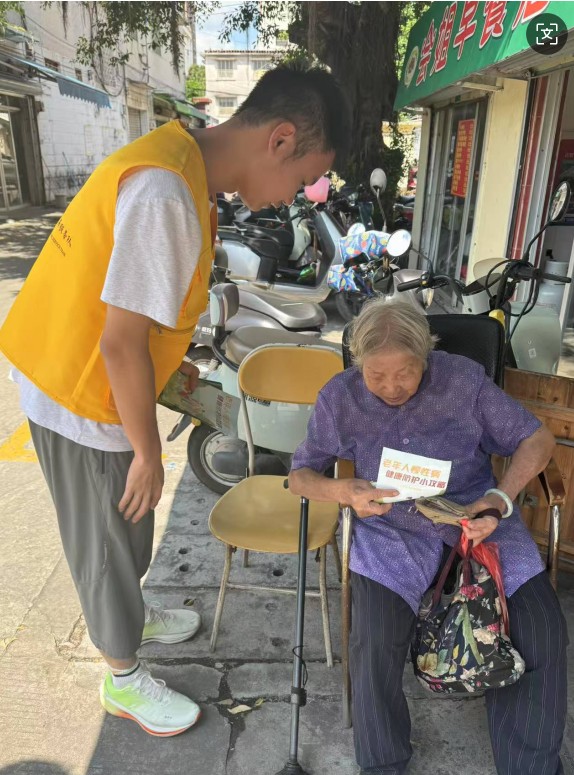 2025年7月9日,湛江市霞山区海滨公园内人头攒动,热闹非凡。在这充满生机与活力的公共空间里,广东医科大学颐康医养服务队的队员们正积极投身于一场意义重大的慢性病科普宣传活动,他们以发放传单的形式,将健康知识的火种播撒开来,为广大市民的健康生活助力。