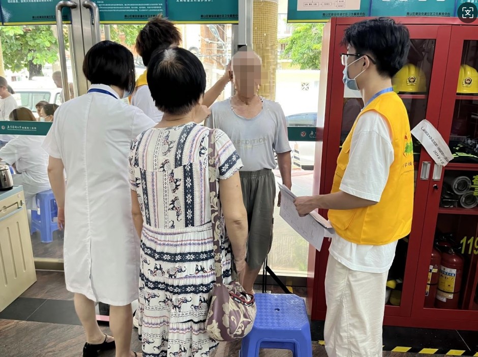 2025年7月8日上午,霞山区建设街道卫生服务中心的大厅里,已有一群身着统一队服的身影忙碌穿梭。广东医科大学颐康医养服务队的队员们提前抵达,为了让后续体检工作顺利开展,仔细清点体检设备、调试仪器。他们深知,每一个细节都关乎老人的体验与健康数据的精准,从血压计的校准,到血糖仪试纸的准备,再到体温枪的调试,力求为后续服务筑牢基础。