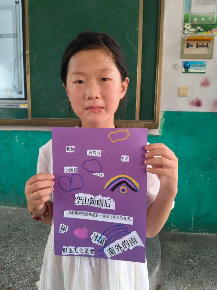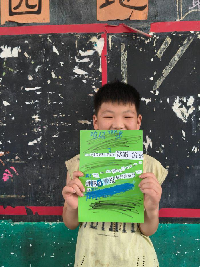 7月22号下午,河南省商丘市魏庄小学的教室里洋溢着一片欢乐而温馨的氛围。在支教团成员都语菲老师的带领下,小朋友们迎来了一堂充满创意与诗意的拼接诗课。剪刀、彩纸、胶水、诗句……孩子们兴奋地用他们灵巧的双手,剪贴出一个个属于自己的独特而富有诗意的世界。