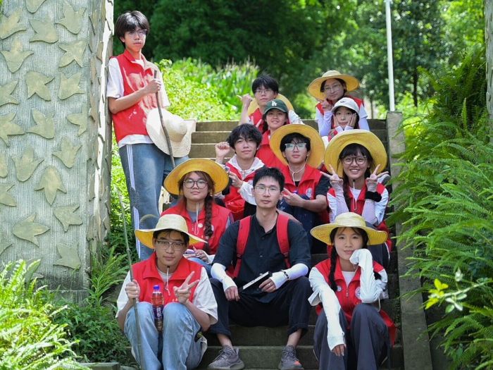 (图为志愿者在树荫下面合照通讯员韩依辰摄)