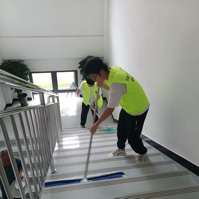 部分成员走进图书阅览室,在林林总总的资料间穿梭,仔细搜寻有关焦裕禄同志的史料。他们专注翻阅、认真记录,试图从历史文字中,更深层次地探寻焦裕禄同志的精神足迹,让精神感悟在史料研读中持续沉淀;另有成员来到馆内公共区域,拿起清洁工具,对楼梯进行清扫。他们身着亮黄色志愿服,认真擦拭台阶,为纪念馆营造整洁环境,用劳动践行服务精神;剩下的成员则奔赴住宿区,清理区域卫生,以劳动为纪念馆的日常运转助力。