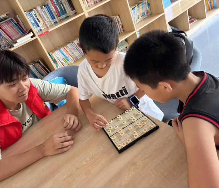 夕阳西下时,一天的热闹渐渐沉淀下来。志愿者们正轻手轻脚地帮孩子们整理散落的棋子,把揉得五花八门的橡皮泥收进盒子里。扎羊角辫的小姑娘用甜美的笑容表达对志愿者的感谢,志愿者们望着空荡荡的屋子,相视一笑掌心还留着橡皮泥的软,耳边还飘着棋子落盘的轻响,这大概就是一天里最甜的收尾。
