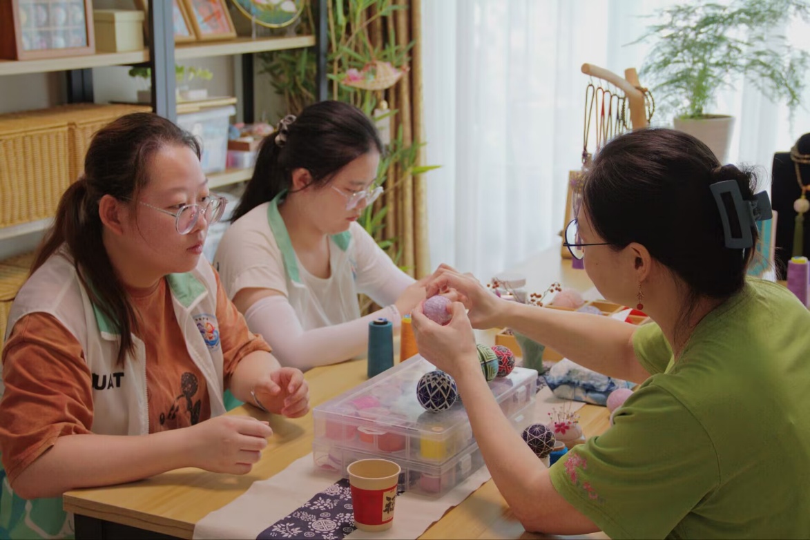 2025年7月10日,湖北汽车工业学院“拾遗楚韵・启为创新”非遗调研团队踏上暑期三下乡的征程,前往湖北省宜昌市西陵区,走进屈敏老师的“掬水在”工作室,旨在通过手鞠球这一载体,探寻散落民间的非遗技艺如何在时代浪潮中延续生命力。