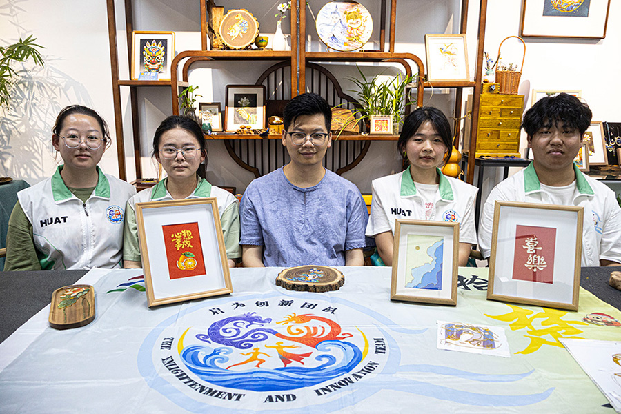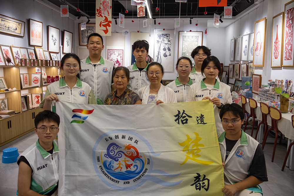 湖北汽车工业学院“拾遗楚韵·启为创新”团队此行,亲历了一场非遗的青春实验。在舞水剪纸工作室,成员们触摸到红纸背后母女两代人的温度接力;在掐丝珐琅的流光中,他们感受到师徒二人让古老纹样与电竞热血同屏共振的魄力。