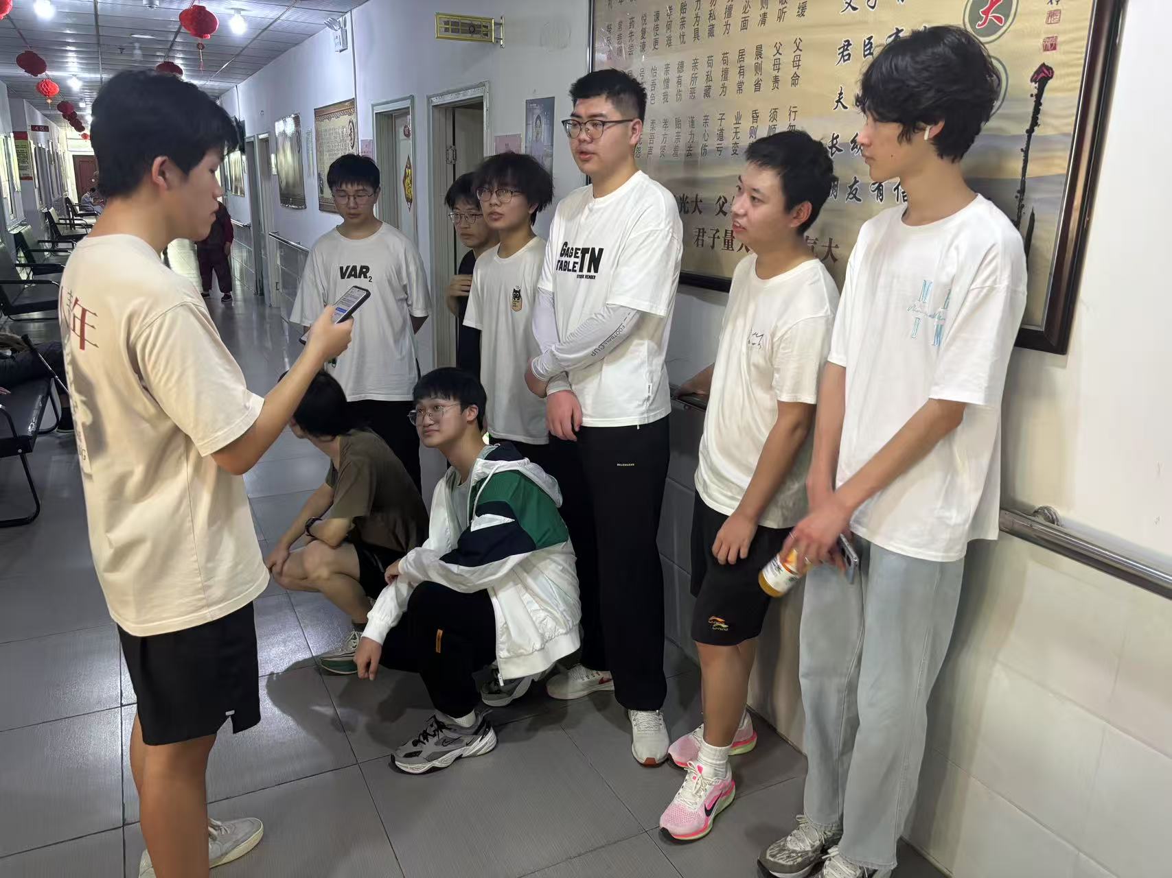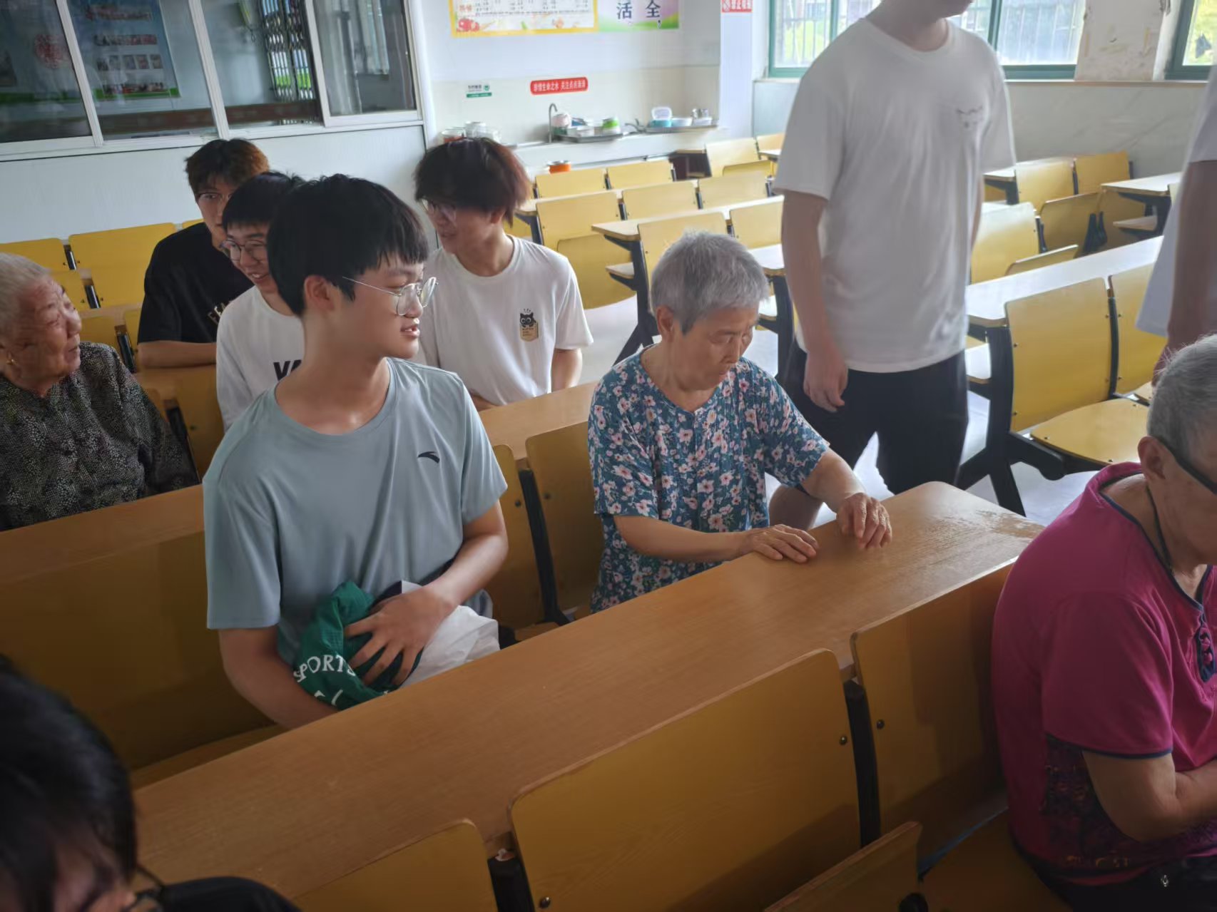 活动当天,志愿者们一到老年公寓,便分成几个小组行动起来。一部分同学径直走进老人的房间,围坐在老人身边,像家人般拉起了家常。他们耐心倾听老人们讲述年轻时的故事、生活中的点滴,时而回应,时而提问,认真的模样让老人们打开了话匣子,房间里不时传出阵阵温馨的笑声。一位老奶奶握着志愿者的手说:“孩子们愿意听我们说话,心里真舒坦,就像自家小辈在身边一样。”