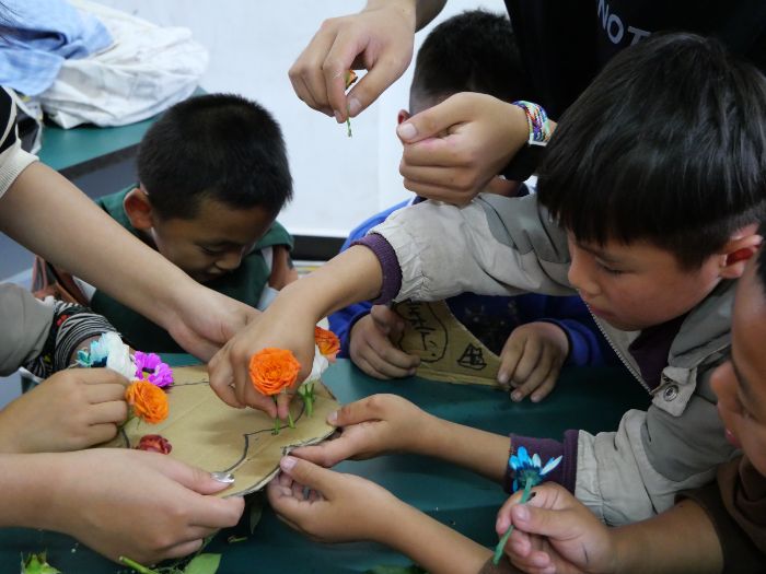 从废旧纸板变身创意插花的环保实践中,孩子们领悟了“变废为宝”的智慧;仰望天空,云朵的形状和火烧云的绚烂,解码了气象与梯田生态的紧密联系;在“河流争霸赛”和水循环实验中,触摸到了江河的脉搏与自然的永恒法则;透过中国传统色彩的斑斓画卷,他们用青花瓷盘和泥塑梯田,描绘出文化与自然的交融之美;而中医草药的芬芳与穴位的奥秘,则让他们懂得了“天人合一”的古老智慧。