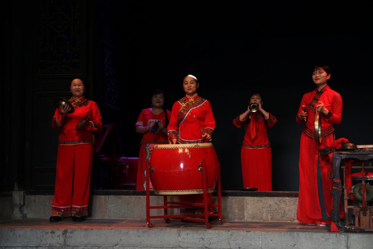抵达屈原祠时,洪亮的歌声在山间回荡。调研团队循声找到罗留英老师及秭归薅草锣鼓表演团队,悄然落座观摩正在进行的表演。领唱者嗓音高亢清越,穿透力极强,歌词内容涵盖农事生产细节、生活趣事及美好愿景。其他演唱者配合默契,和声时而悠扬婉转,时而雄浑激荡;锣鼓手全神贯注,鼓点节奏铿锵,铜锣声清脆激昂,与歌声交织,营造出热烈氛围。现场情景使人仿佛置身田间,联想到劳动人民弯腰薅草的集体劳作场景——韵律协调的动作、汗珠滚落的笑容,生动展现出生产实践中创造快乐的生活智慧。调研团队为这一原始质朴的艺术形式深感震撼,更深刻认识到非物质文化遗产所承载的集体记忆与文化认同价值。