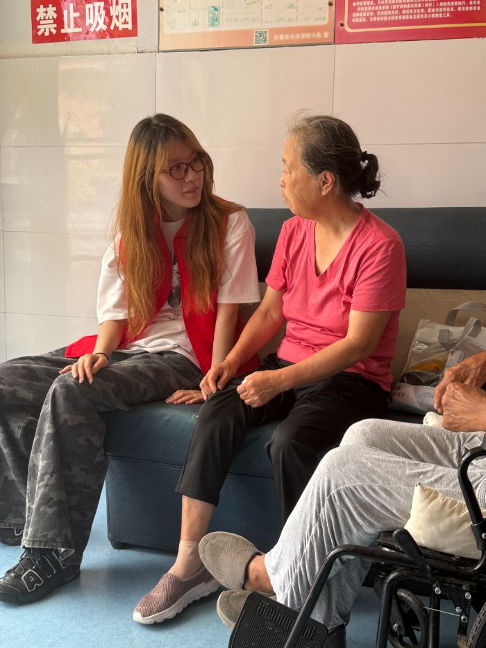 活动第一天,团队抵达养老院后,迅速与院方进行深度对接,熟悉环境,细化活动流程。随后,大家带着购买的物资再次走进老人中间,与老人们亲切互动。接着集中开展环境清洁工作,为老人们打造一个整洁舒适的居住环境。为老人测量血压、修剪指甲,并进行个性化陪伴聊天。成员们围坐在老人身边,认真倾听他们的心声,老人们也敞开心扉,分享着自己的生活点滴。这一天,团队与老人们初步建立了信任和情感联系。