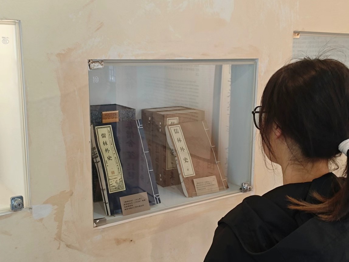 转过展柜,《儒林外史》主题展区如一幅徐徐展开的社会长卷。范进中举的癫狂、严监生的吝啬、杜少卿的狂放……讲解员细数书中人物,更深入剖析文字背后的锋芒:"他用幽默写悲凉,以讽刺显慈悲,看似嘲弄儒林丑态,实则藏着对世道人心的深切关怀。"团队成员们围在展柜前热烈讨论:"这讽刺艺术比同时代的小说更尖锐,却又留着三分温情""这种'虽云长篇,颇同短制'的结构,在清代小说里太创新了"。当目光落在"秉持公心,指擿时弊"的评语上,大家忽然明白:这部作品之所以跨越 centuries 依然鲜活,正因它写透了人性的复杂与时代的困局。