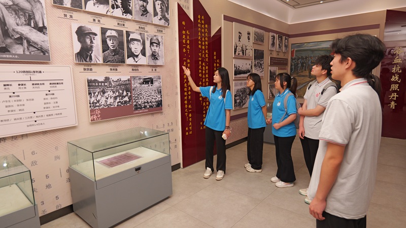 走进八路军 120 师指挥部旧址,眼前简朴的陈设仿佛在无声地诉说着过往那段艰苦卓绝的抗战时光。斑驳的墙壁、简陋的桌椅,每一件物品都承载着历史的厚重,将那段岁月的艰苦与不易生动地展现出来。在这里,实践团成员们围坐在一起,分享着他们精心搜集到的抗战英雄事迹。一个个感人至深的故事,如同穿越时空的火种,瞬间点燃了大家内心的情感。从这些故事中,大家看到了英雄们在绝境中坚守信念、在危难时刻挺身而出、冲锋陷阵的壮举,他们用生命和热血捍卫着国家的尊严与民族的希望,让在场的每一位成员都深受触动,深刻体会到革命先辈们的伟大与不朽。