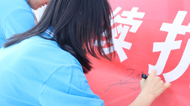 在参观和学习的过程中,成员们围坐在一起展开了热烈的讨论。讨论的照片定格了大家认真思考、交流感悟的瞬间。张鑫阳同学感慨道:“站在誓师旧址,仿佛能听到当年将士们的呐喊。” 他的话语道出了大家共同的心声。今天的幸福生活来之不易,是无数先辈用鲜血和生命换来的。大家纷纷表示,要以先辈为榜样,将这份炽热的爱国情怀转化为干事创业的动力,在各自未来的岗位上践行初心使命,不负时代,不负韶华。最后,在富平纪念地开展的 “铭记历史” 主题签名活动将此次实践推向了高潮。学生们纷纷在写有 “铭记历史、珍爱和平、开创未来” 的横幅上签下自己的名字。这一个个名字,笔笔有力,不仅是对历史的铭记,更是对传承红色基因、肩负时代使命的郑重承诺,是青春与责任的宣言。