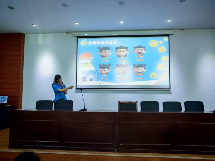 “你可以模仿出大屏幕上的表情包吗?”一个趣味小游戏的开展让孩子们不仅感受到课堂快乐,而且也了解到情绪的表现形式。关于情绪的表现形式,志愿者指出,情绪可通过语言、表情、肢体动作及语音语调等方式体现,表演的开展更是让青少年更直观地感受情绪的外在表现。