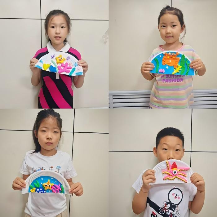 活动前期,志愿者们精心筹备,备齐了超轻粘土、彩色卡纸、画笔、纸盘等材料,将活动场地布置成充满童趣的创作空间。课堂上,志愿者先通过生动演示,教孩子们揉、捏、压、粘等基础技法,随后鼓励大家以海底世界为主题发挥想象自由创作。孩子们兴致勃勃地挑选彩泥,有的捏出摆动触须的水母,有的制作色彩斑斓的珊瑚,还有的用黏土和卡纸组合出鱼群穿梭的深海场景,志愿者在旁耐心指导,现场充满欢声笑语。
