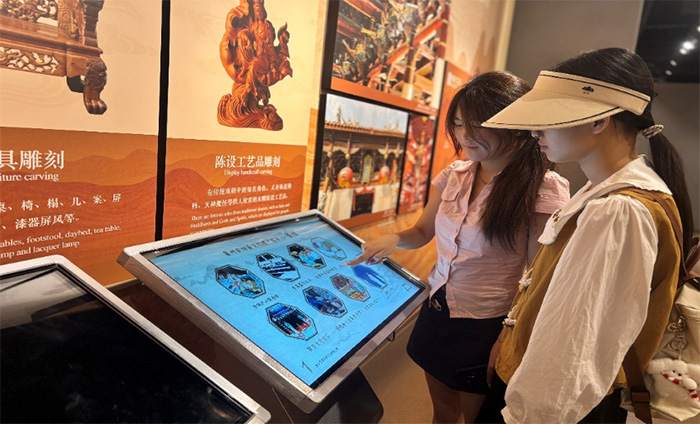 实践队员们走进泉州市非物质文化遗产馆,馆内陈列的非遗珍品琳琅满目,提线木偶的灵动、惠安女服饰的绚丽,无不诉说着刺桐城的千年风华。明清簪花展品与当代创新作品交相辉映,亦展现了传统工艺的精湛与时代活力。队员们的脚步声与远处传来的南音琵琶声交织,像一场跨越千年的对话,让队员们沉浸式感受到泉州市非遗文化的多元与厚重。