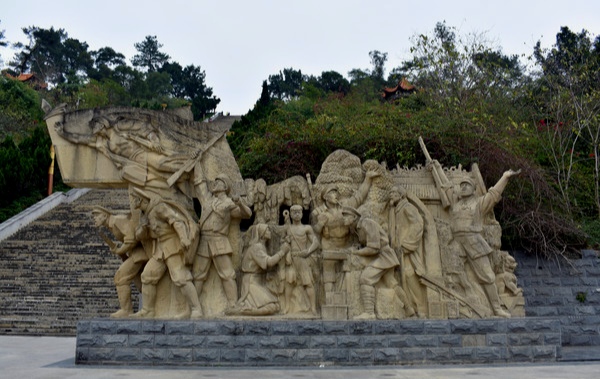 拾级而上时,基座的浮雕在晨光里愈发清晰。有人指着那些穿对襟衫、戴头巾的身影轻声说:“原来各族群众都在里头。”我们俯下身细看,枪杆的纹路、衣角的褶皱,仿佛还带着当年的温度。风掠过碑顶,像极了历史深处传来的回声。