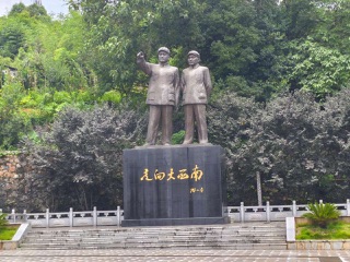 洪安作为解放大西南的重要门户,铭刻着中国人民解放军西南服务团的丰功伟绩。实践团特别安排了“红色寻根”环节,在历史发生地深情追忆那段烽火岁月。1949年,以第二、第三野战军为骨干的西南服务团将士们,肩负着解放与建设西南的历史重任,不畏险阻,深入川、黔、康(旧省名)等广袤地域。他们在解放上海、重庆等大城市后迅速转战,克服重重困难,为彻底粉碎旧政权、建立人民新政权、恢复社会秩序与发展生产,奠定了坚实基础。服务团成员深入基层、联系群众、艰苦奋斗的精神,在洪安的山水间留下了永不磨灭的印记,成为激励后人砥砺前行的宝贵精神财富。