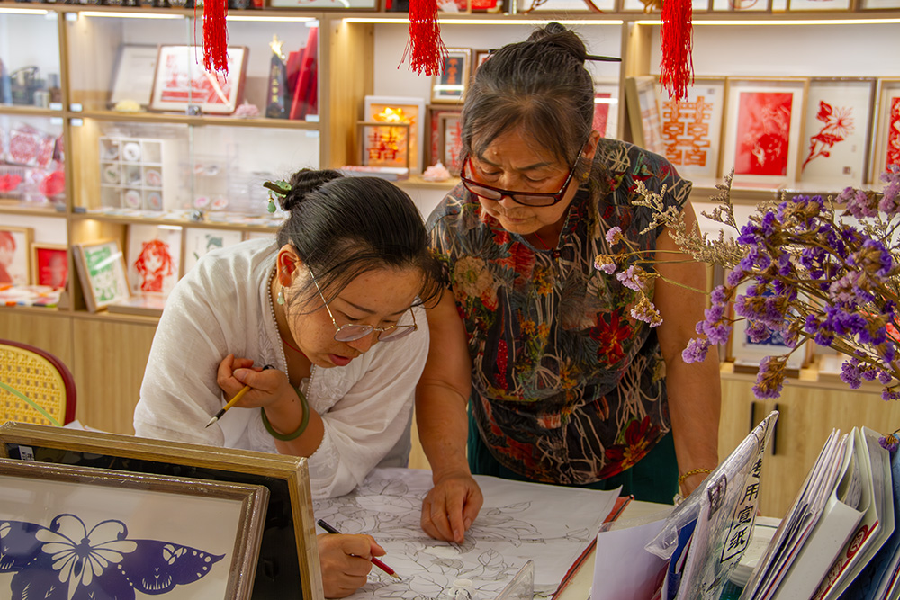 团队看着母女俩配合:袁超美定大形,线条稳如静水;邬金修细节,刀锋利似流风。“传承不是复刻,是像剪纸留白,在空处填新光。”邬金的话让成员顿悟,所谓非遗生命力,正在于守正与创新的平衡。