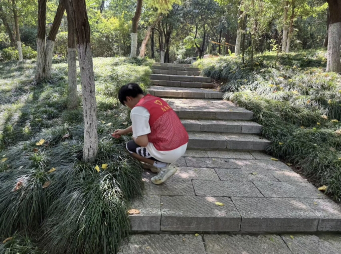 活动伊始,学生们在相山公园入口处集合,工作人员简要介绍了公园环境现状及垃圾分类知识,强调了活动过程中的安全注意事项。随后,大家分组领取手套、垃圾袋等工具,沿公园主要步道、观景台及植被密集区展开清扫。同学们分工明确,有的弯腰捡拾游客丢弃的塑料瓶、食品包装袋,有的细致清理隐藏在草丛中的纸屑、烟头等杂物,还有的向过往市民宣传环保理念,呼吁大家共同爱护公共环境。