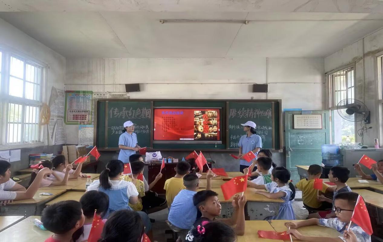图为团队成员陈娜开展弘扬红色文化主题教育 钱吕俊摄星火照来路,红心向未来。团队成员以“传承红色基因,赓续精神血脉”为主题在三角完全小学开设红色文化主题教育,借助课件,生动讲解红色历史和革命故事,并组织红色观影活动让孩子们认真观看红色影片。通过《觉醒年代》《我和我的祖国》等典型影片把波澜壮阔的红色历史讲给乡村孩童,让当地孩子们以直观方式感悟红色精神。